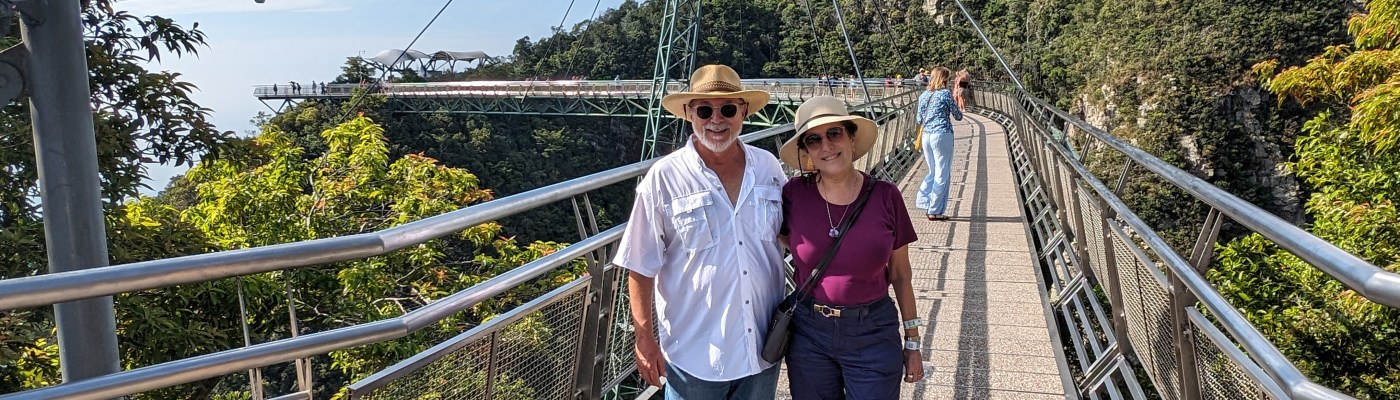 This tourist oriented island is known for its natural beauty, diving, beaches, nightlife and duty free shopping. We had a brief stay here and took a ride up the Langkawi Cable Car. The gondola ride took us about a mile and a half up by to the peak of Gunung Machinchang. We also got to walk across the Sky Bridge and see the beautiful views below.