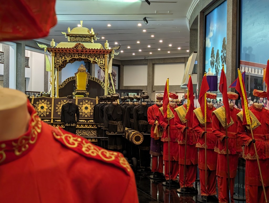 We found that our Brunei Heritage tour had a lot to do with the heritage and grandeur that is the country’s king, his Majesty Sultan Hassanal Bolkiah ibni Omar Ali Saifuddien. The Royal Regalia Museum was described as a museum dedicated to Brunei tradition and history. Mainly it is dedicated to aggrandizing the Sultan. His carriages, pictures of him and his family, royal gifts and replicas of rooms in his palace are all displayed here. This king is one of the few absolute monarchs in the world. He has taken for himself all of the country’s most important titles, including Prime Minister, Minister of Defense and of Finance. In other words, if the king rules it to be so, then so it shall be.