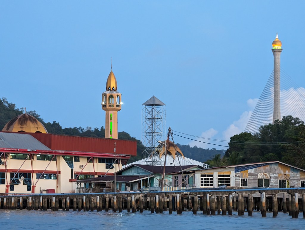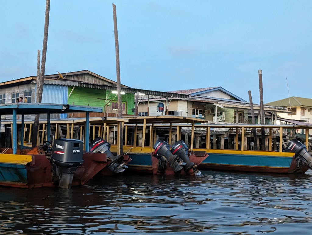 Our most interesting visit in Brunei was Kampong Ayer, or the Water Village. This is a settlement built on stilts above the Brunei River which goes back at least 600 years. It is the world’s largest settlement on stilts, with houses, mosques, schools and homes clustered among 40 villages. About 30,000 people live there and travel by boat or a network of boardwalks and footbridges. And walking the bridges, many of which sway and have no rails, is a challenge for newcomers! Today many of the homes have electricity and cable. And some people also own homes on the shore and keep their water home for family and day use.