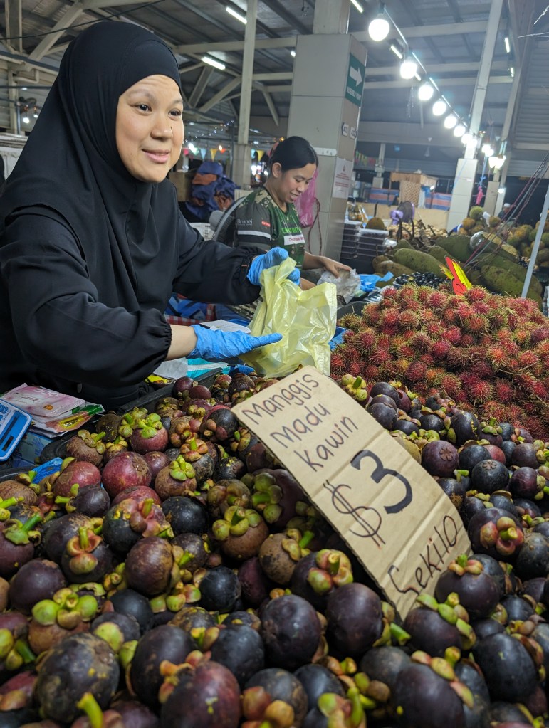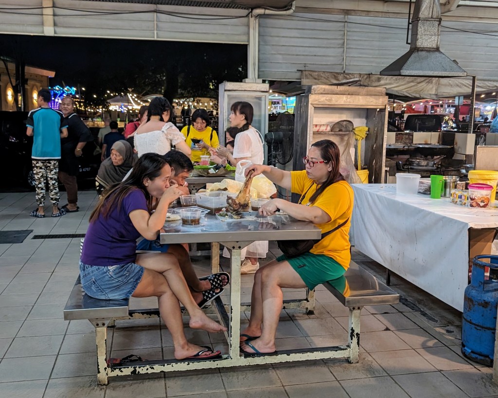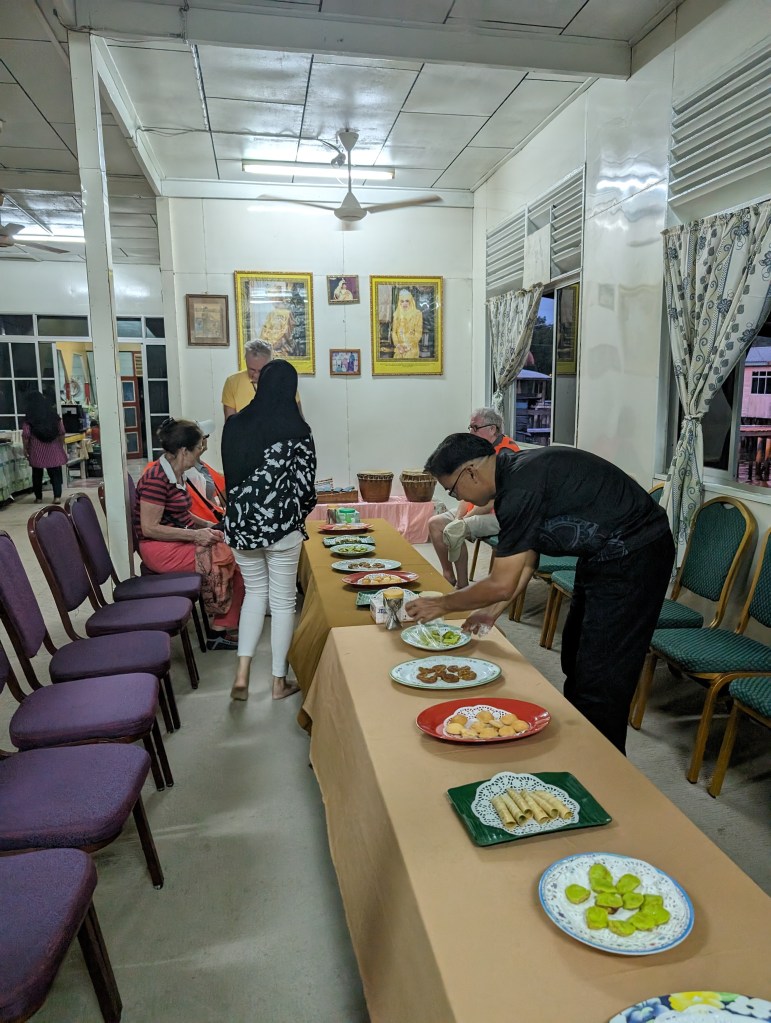 We visited the night market in Brunei. Night life in Brunei is scarce, since this is a country without theaters (except for carefully curated cinema), clubs, bars, or alcohol. The night market, though it closes at 9, is one of the few places in Brunei where people can go to walk, hang out and meet people. It’s a huge open warehouse-type building holding a food court and market and it’s fun to watch the action. We were struck by the friendliness of most people as we wandered about and took pictures. Thanks for the high signs and good night, Brunei.
