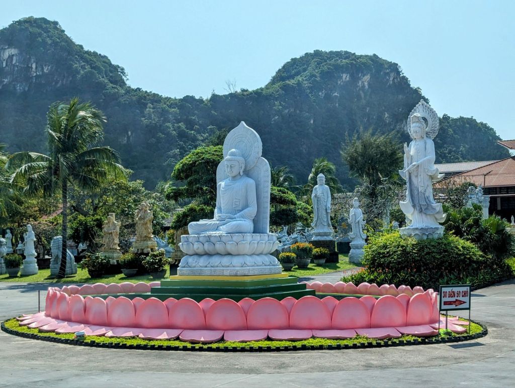 The Marble Mountains in Da Nang have spiritual and scenic meaning. We didn’t climb the mountains and visit their temples and caves, but we did get a view of those majestic hills. They were so named by the French because its geologists found the mountains truly are made of marble. And many local crafts people carve beautiful sculptures from that marble. We got to see some of them, below.
