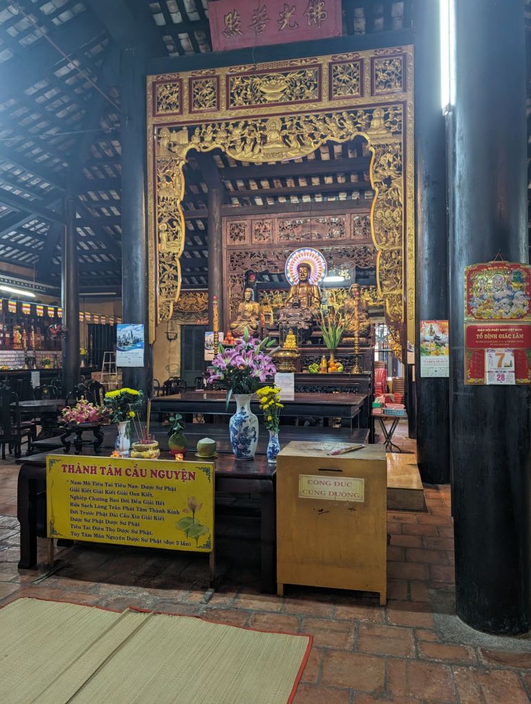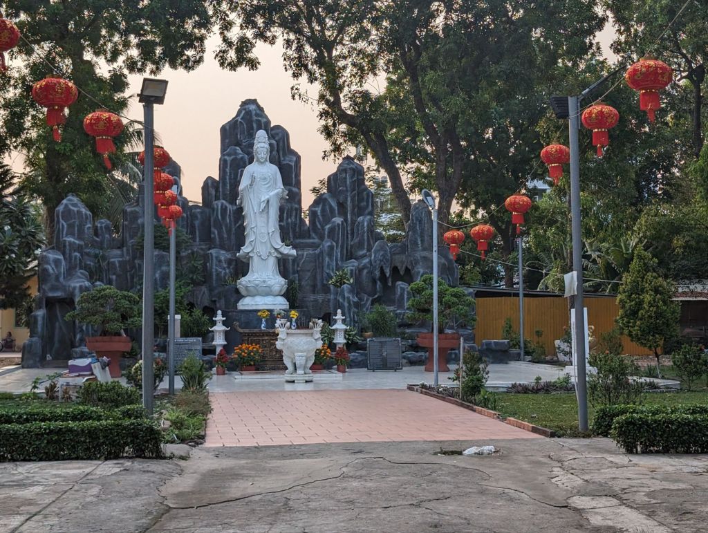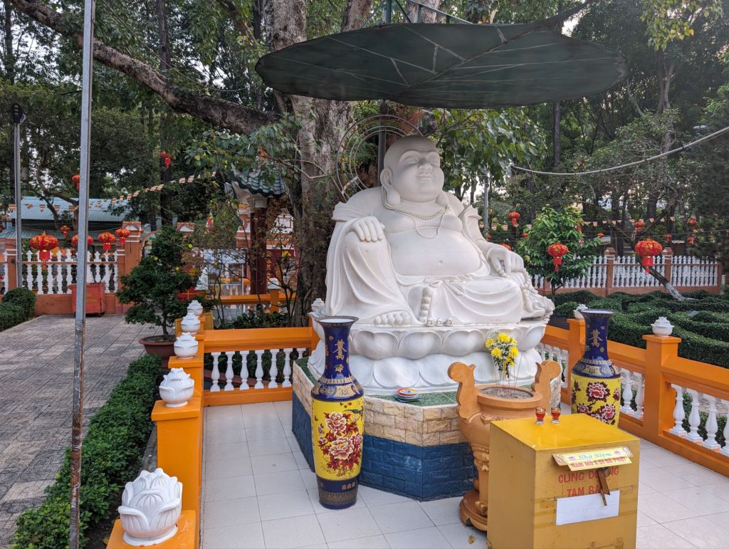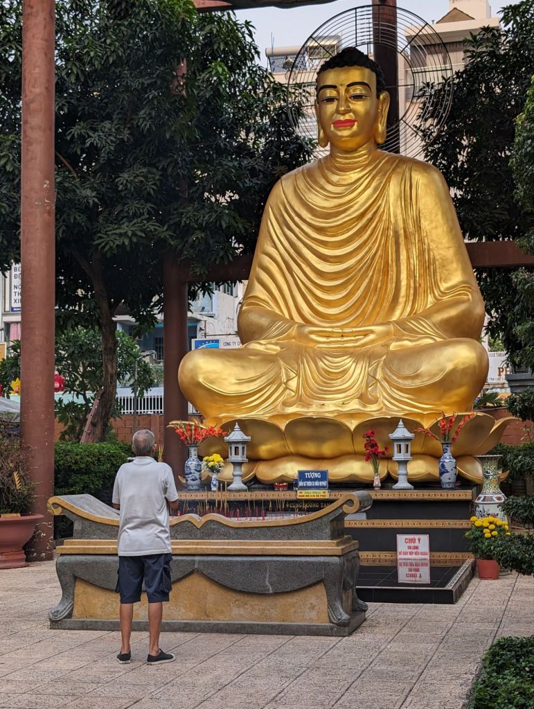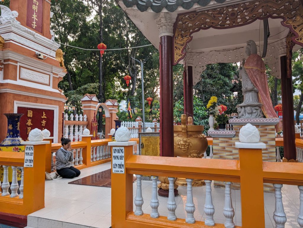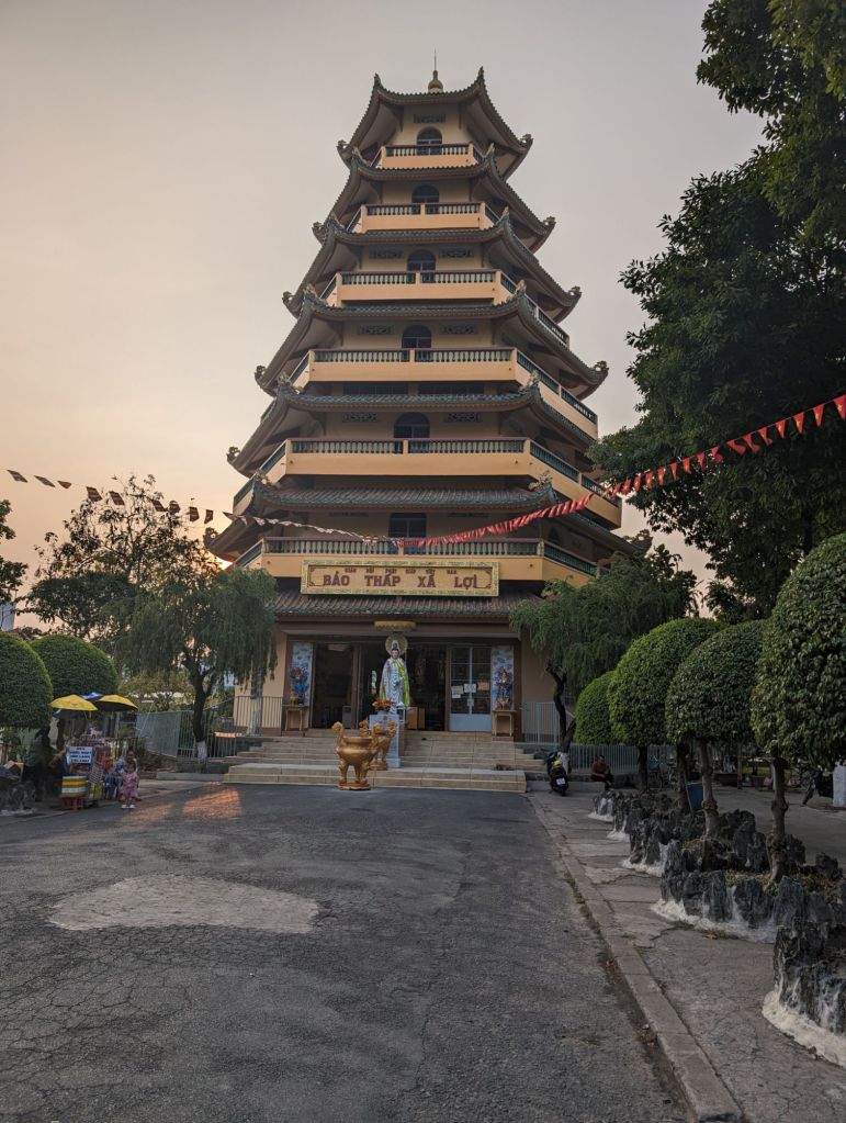 The Xa Loi Pagoda, the largest in Saigon, was built in 1956 to house a sample of the relics of the Buddha. Behind the pagoda on the site are other lovely shrines.