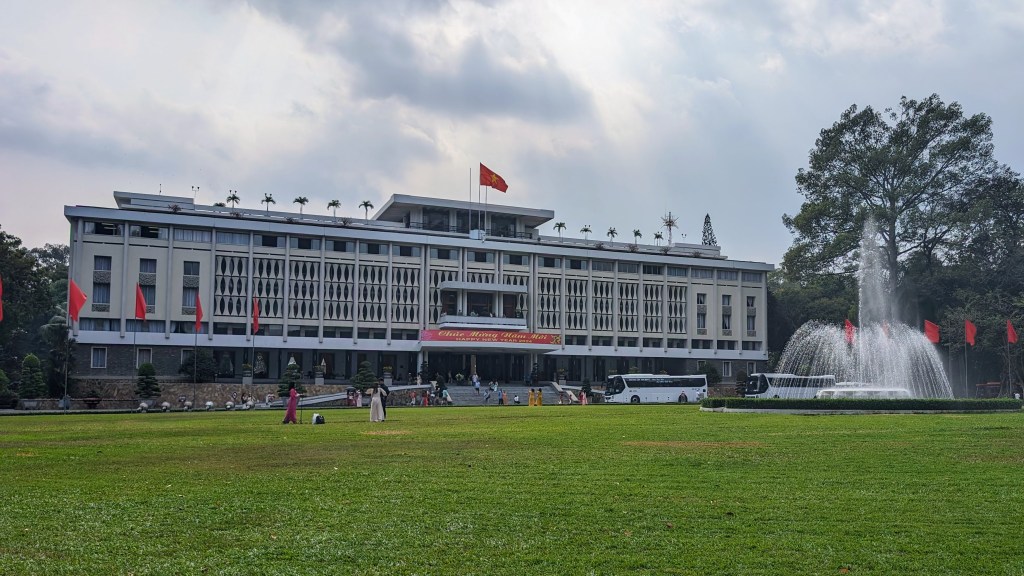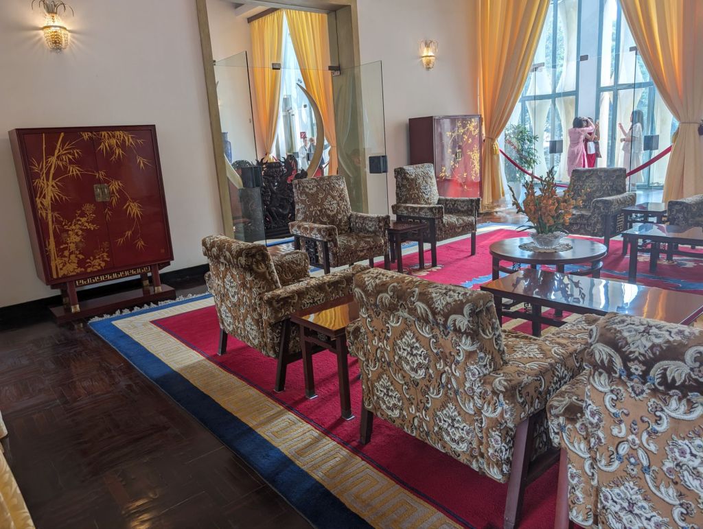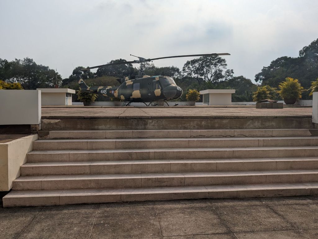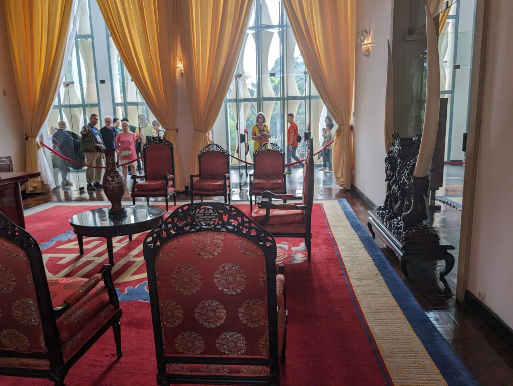 The Independence Palace is another landmark of Saigon and can be toured today. It was ordered built in 1962 by then president Ngo Dinh Diem to replace the palace which had been bombed by dissidents. Diem was assassinated in a coup before he ever moved in. The new leader, General Durong Van Minh, lived and worked there until he escaped when the North Vietnamese army bulldozed through the front gate in 1975. Inside we saw the rooms where he worked and met with foreign leaders including Kissinger and Nixon.