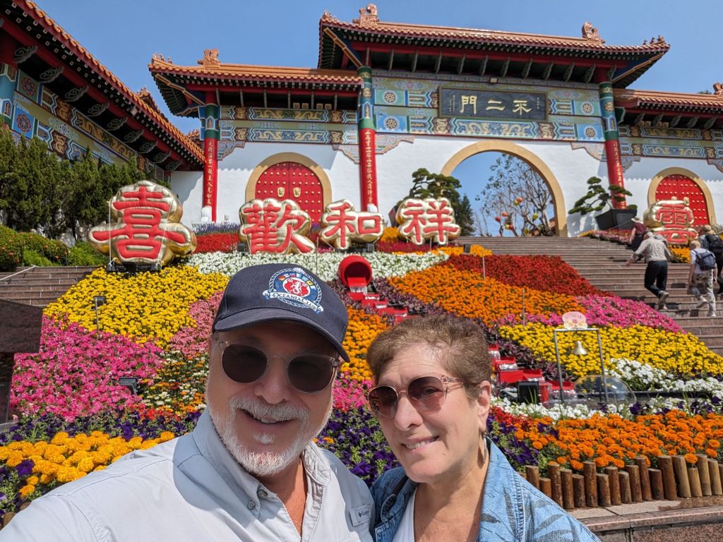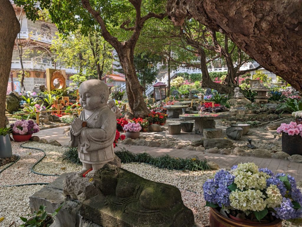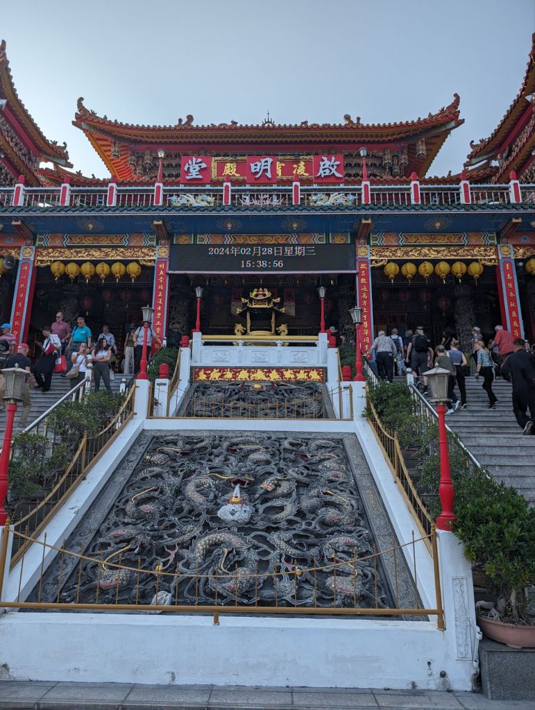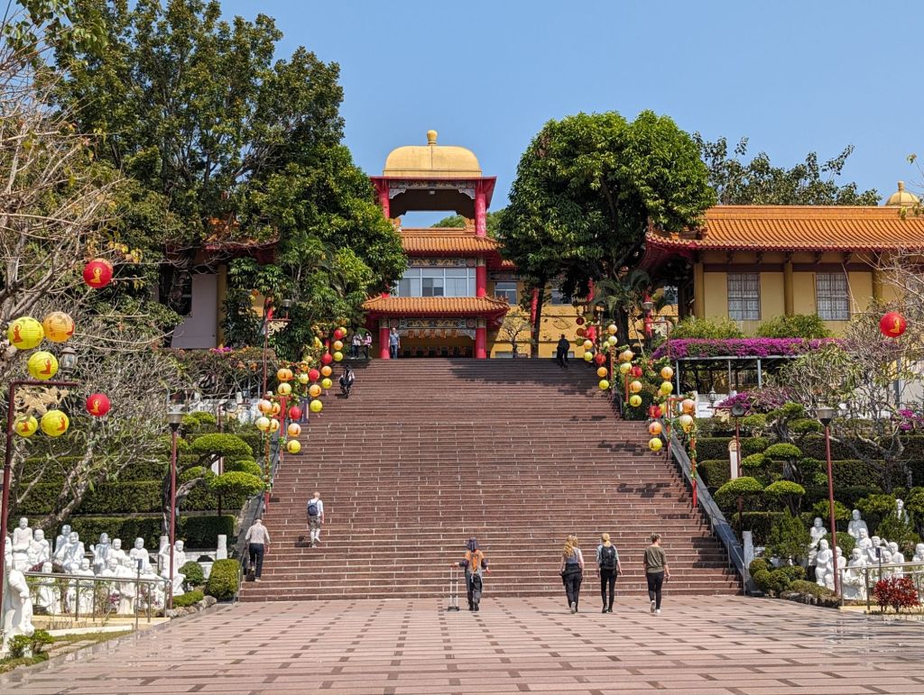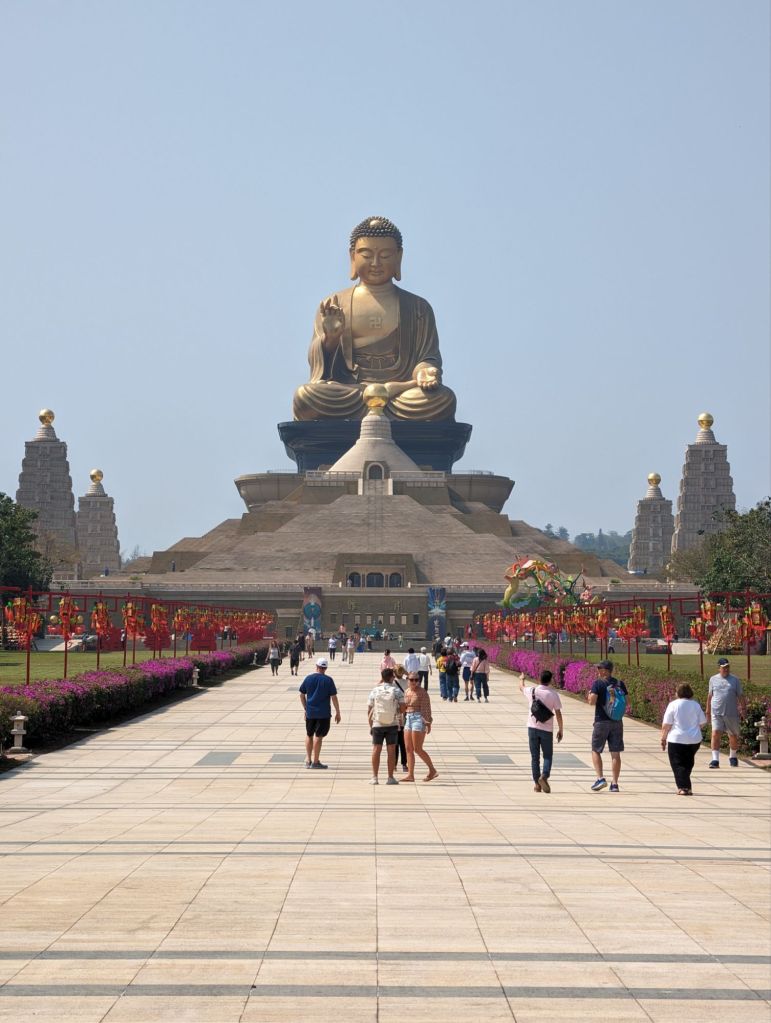 Our main activity of the day was exploring the Fo Guang Shan monastery and museum complex. The name of the organization means “Buddha’s Light Mountain,” and it is the largest Buddhist organization and one of the largest charities in Taiwan. We were impressed with what Master Hsing Yun, the founder of this Buddhist sect, accomplished. This humble monk, without much formal education, had a vision of Buddhism that was inclusive, charitable, and fosters talent through education and cultural activities. It uses the tools of a modern age, including technology and choir music, practices that offended many traditionalists. Called Humanistic Buddhism, this sect now has over a million followers in more than 50 countries. It started here in 1967 when Hsing Yun bought what was then inexpensive forest land and built this monastery for his followers.