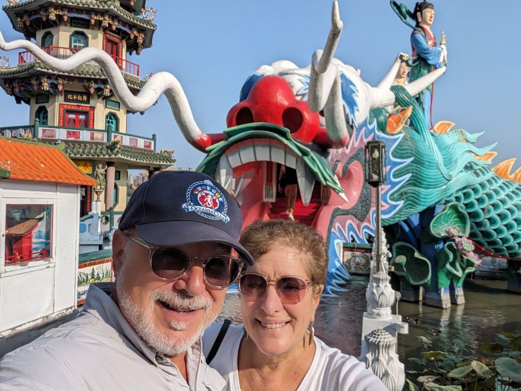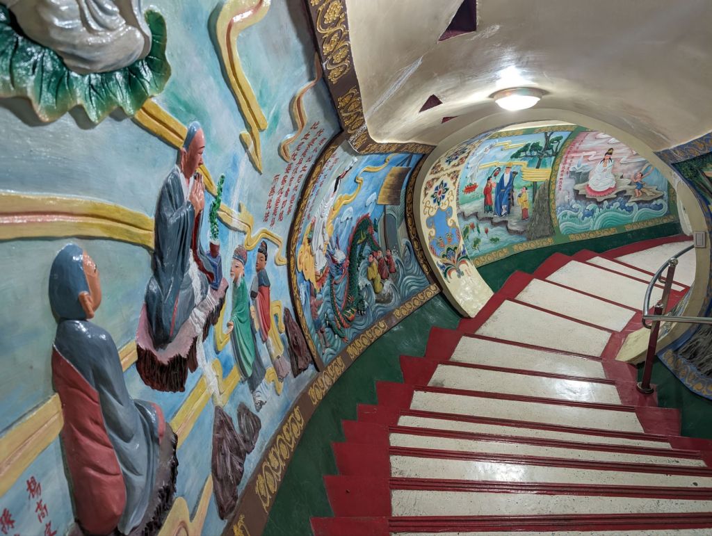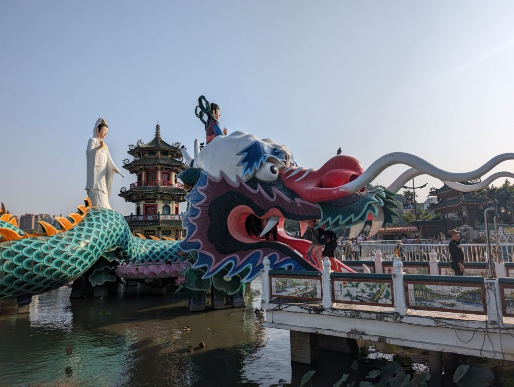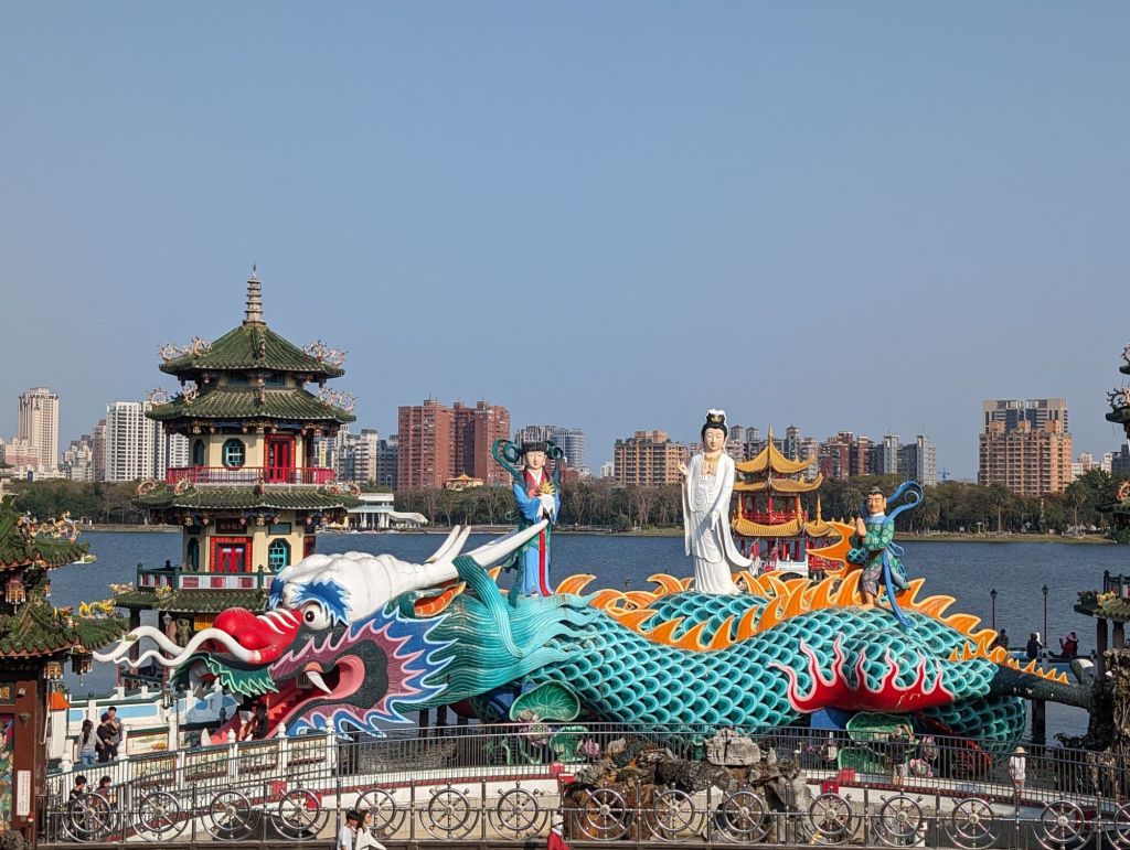 We visited the Spring and Autumn Pavilions on Lotus Lake in Kaohsiung. This Taoist temple complex, below, was built in 1953. The Taoist religion intersects strongly with Buddhism.