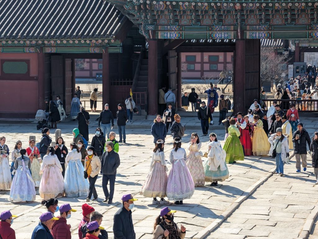 The grand 14th century Gyeongbokgung Palace has been built and rebuilt over the centuries as it endured fire, wars, and invasions. Since the 1990’s the walled palace complex is gradually being restored. Not all of the original palace’s 7,700 rooms will be rebuilt, but more than 500 buildings are now restored on almost 100 acres.