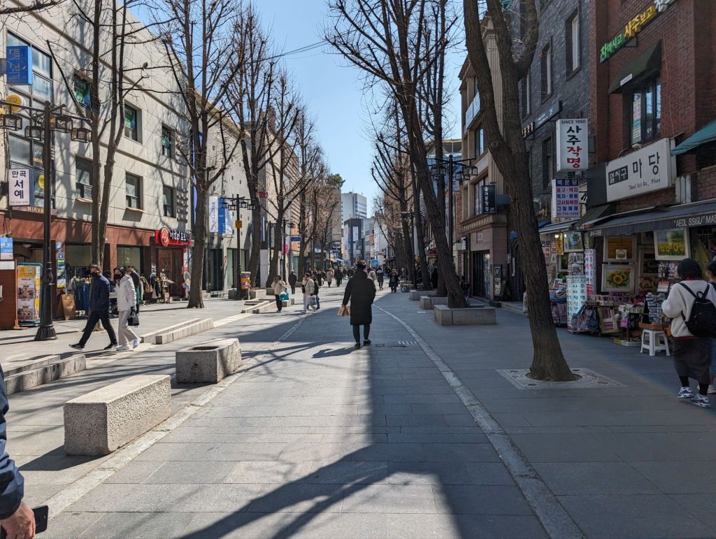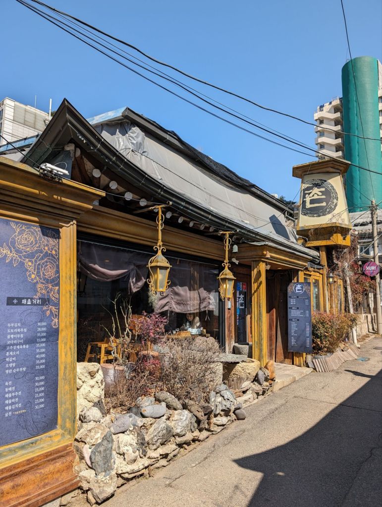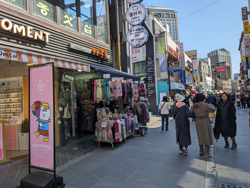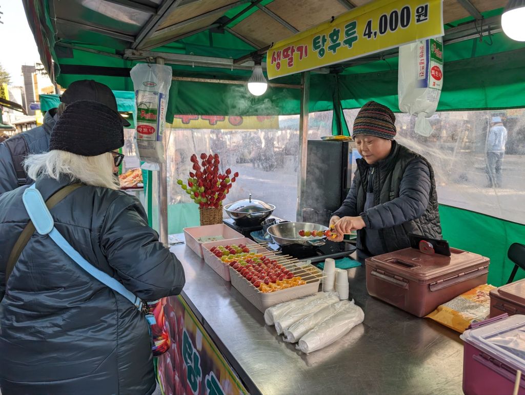 Seoul is definitely a foodie’s heaven. We had a delicious lunch of Korean barbeque at the restaurant below and, after walking through its pretty side street on to a pedestrian shopping road, we salivated over the street food stalls. Too bad we were no longer hungry!