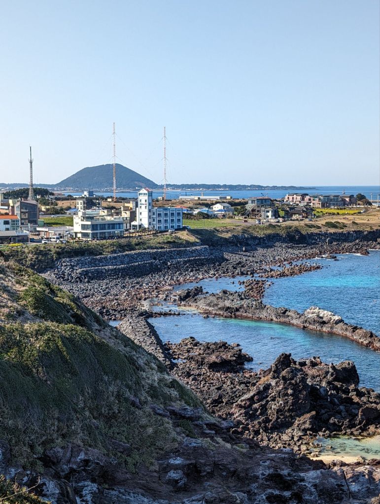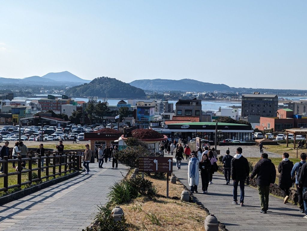 Sunrise Peak, or Seongsan Ilchulbong is a tuff cone volcano with a steep trail to the top of the volcano crater. From there is a magnificent view of the island. We made do with some beautiful views at the base of the mountain.