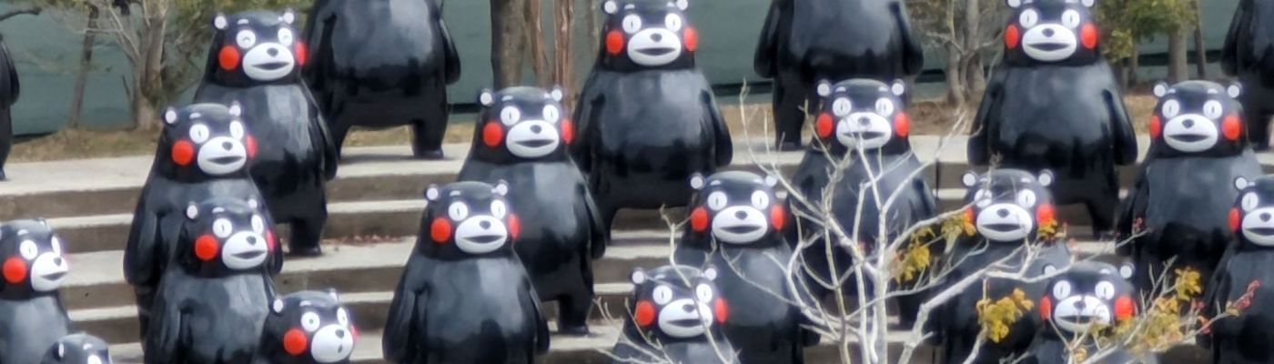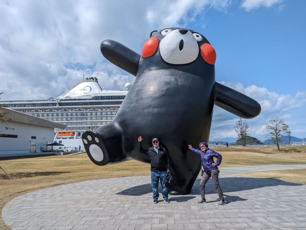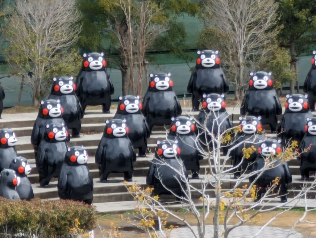 Kumamon shows up everywhere, even climbing up the port’s oil tank.