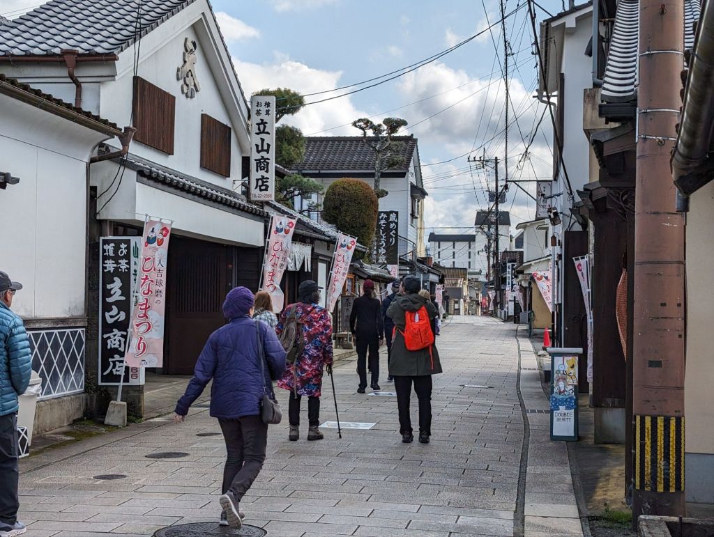 The street leading up to the brewery has a lovely old-fashioned feel.This is the hydraulic press that squeezes the raw soy sauce out of a linen bag after a 3-day pressing.These soy sauce vats, where the product is fermented, are made of glass.This worker gave us a friendly nod as he piped soy sauce into containers.We were invited to sample some of their products in this room while we sipped green tea.There was a lovely, quiet Japanese garden on the property.
