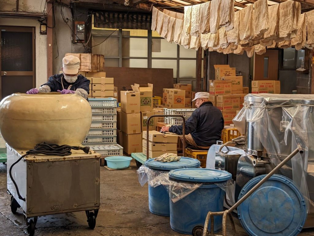 We visited the Kamata Jozoshu Miso Shoyu Brewery, where this 93-year-old company continues to brew soy sauce and make miso and other soy products in a traditional fashion.