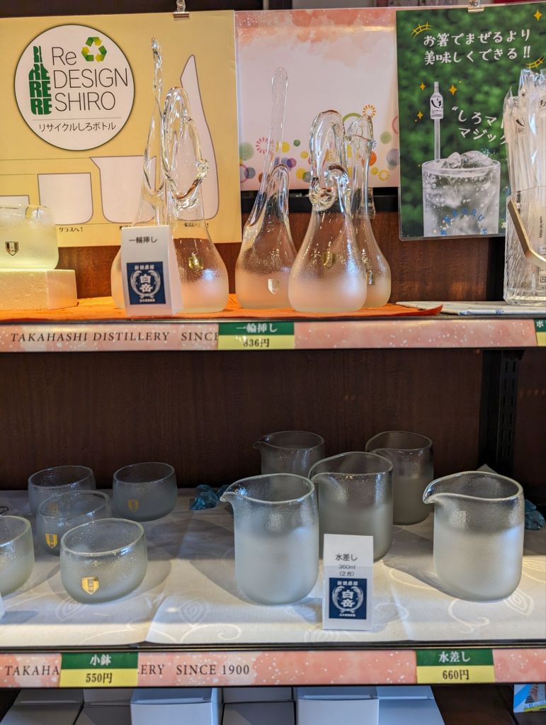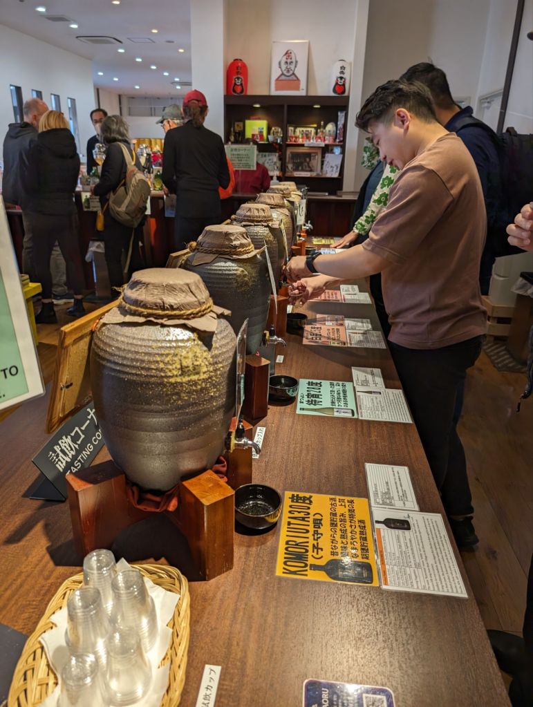 The Takahashi Distillery makes dozens of varieties of Shochu, a Japanese liquor, stronger than sake, usually made with rice containing different herbs and flavorings. Their exhibits showed the traditional methods for making the liquor, though their own distillery is much bigger and more modern.