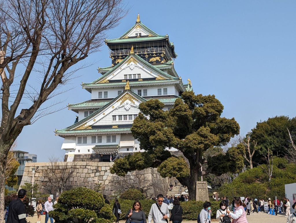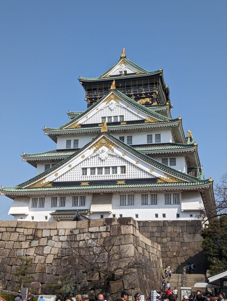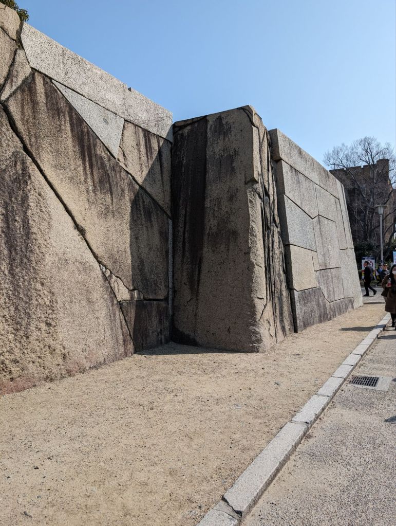 Osaka Castle was built by Toyotomi Hideyoshi in the 16th century. This feudal lord is revered as the great unifier of Japan. He was the only person to achieve the title of Kampaku, or Imperial Regent, who was not born a noble. He wanted his castle to be grand, and it was, although we only saw the remnants of that.