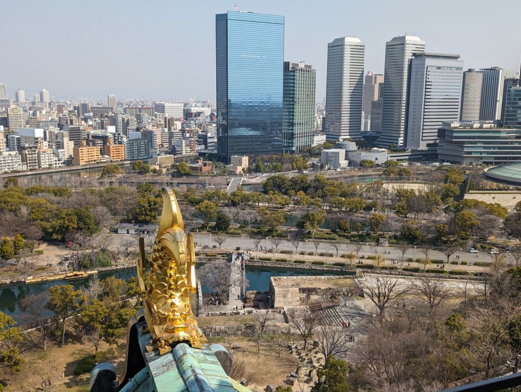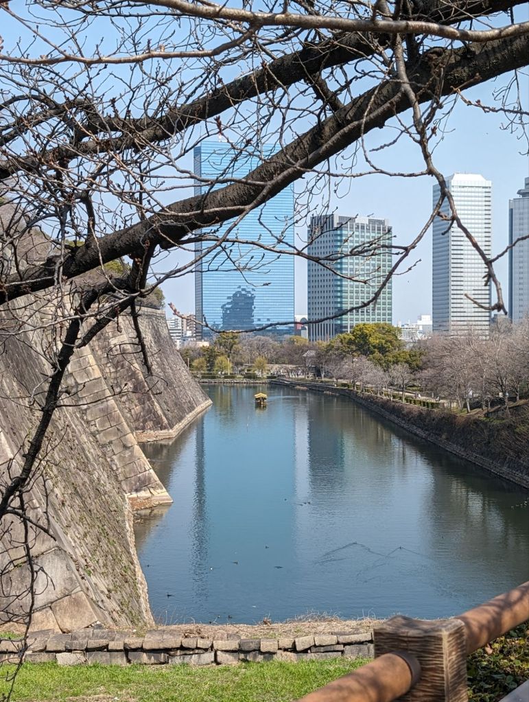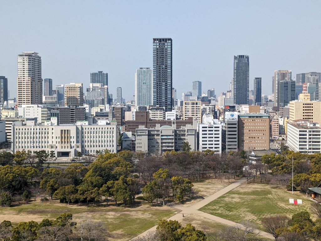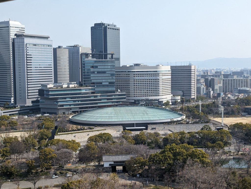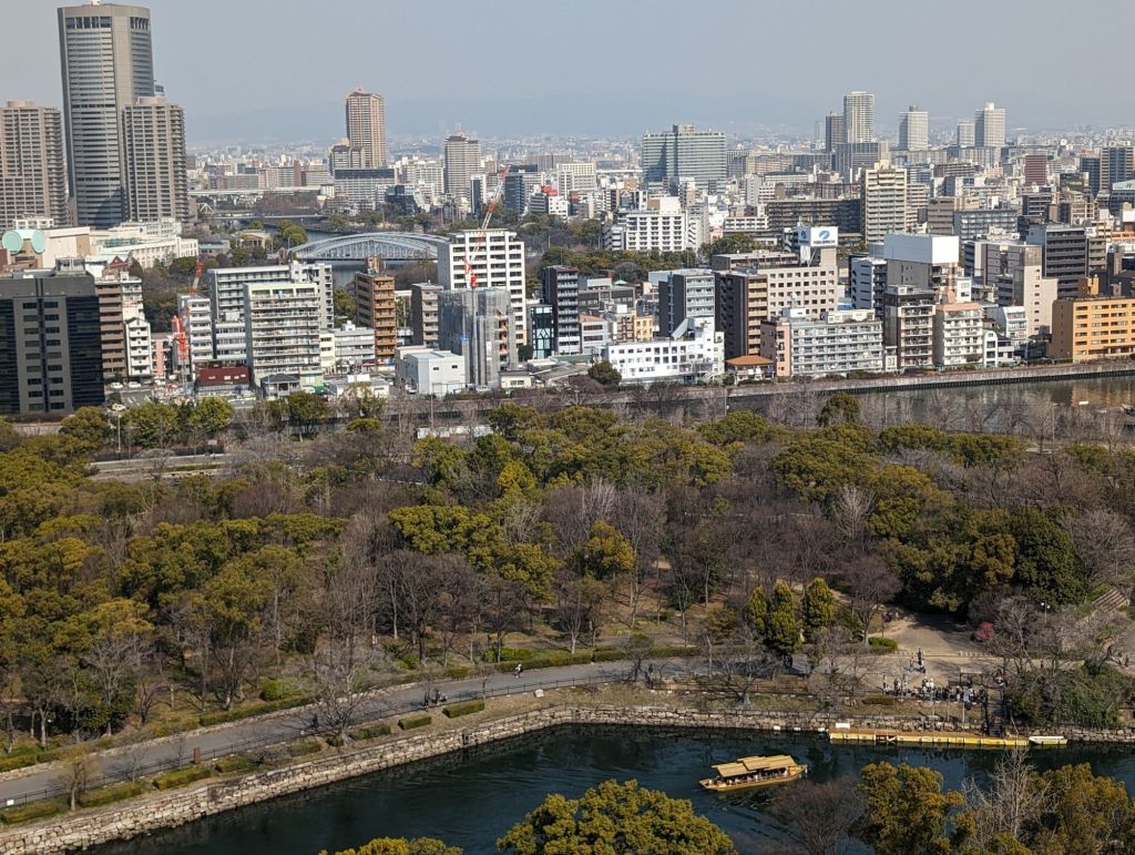 We had a wonderful view of Osaka from the 8th floor of the main tower. Below you can see the bridge across the moat leading to the city.