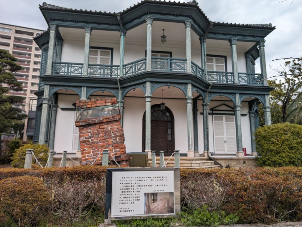 The broken chimney sitting in the front yard fell through the roof during the 1995 earthquake. It was left here to remind future generations of the earthquake’s severity.These stables were part of the original Kodetashi residence.