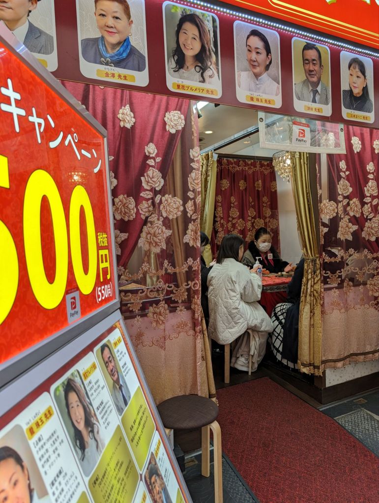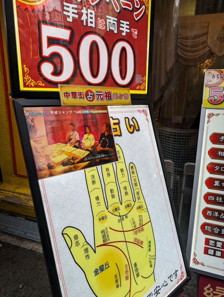 Palm reading is a big thing in Chinatown. We saw a lot of palm reading shops set up and in use.