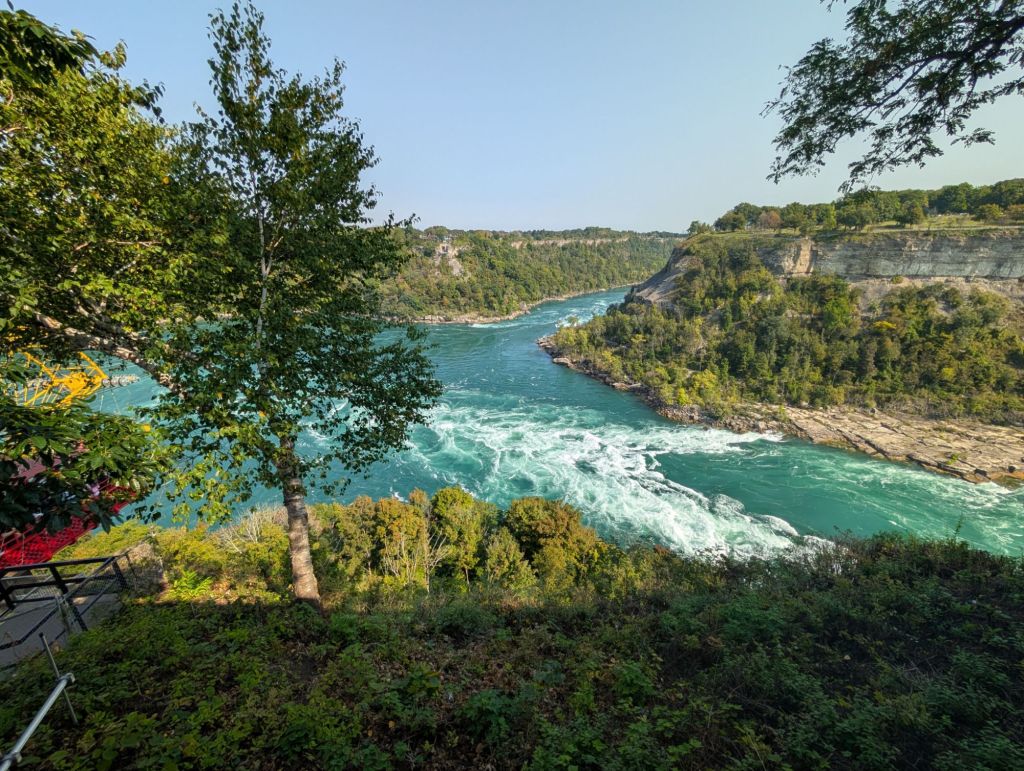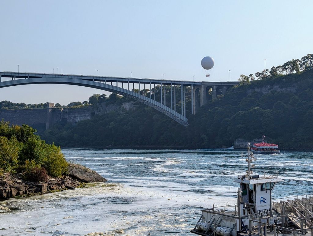 On our ride back to our ship, we saw another natural wonder, the Niagara Whirlpool. This turbulent swirl of water below is in the Niagara Gorge, on the U.S.-Canada border.