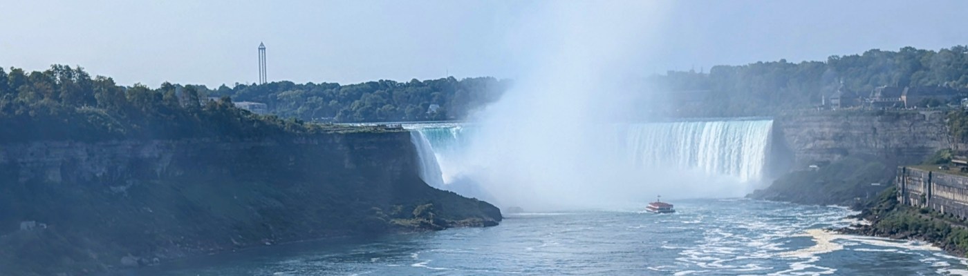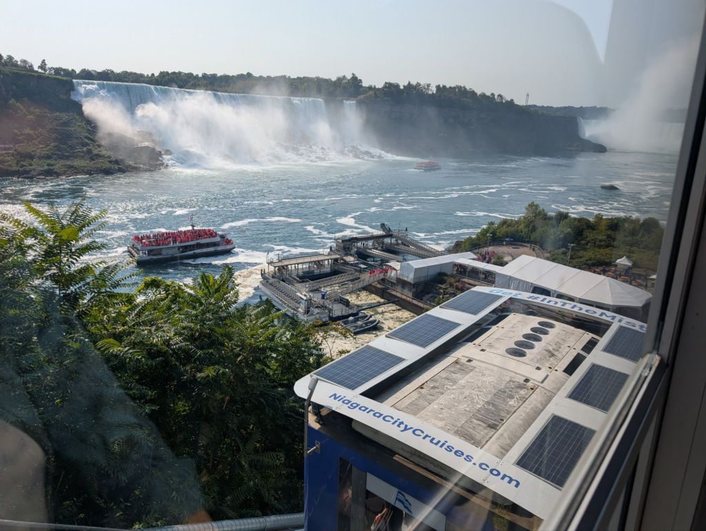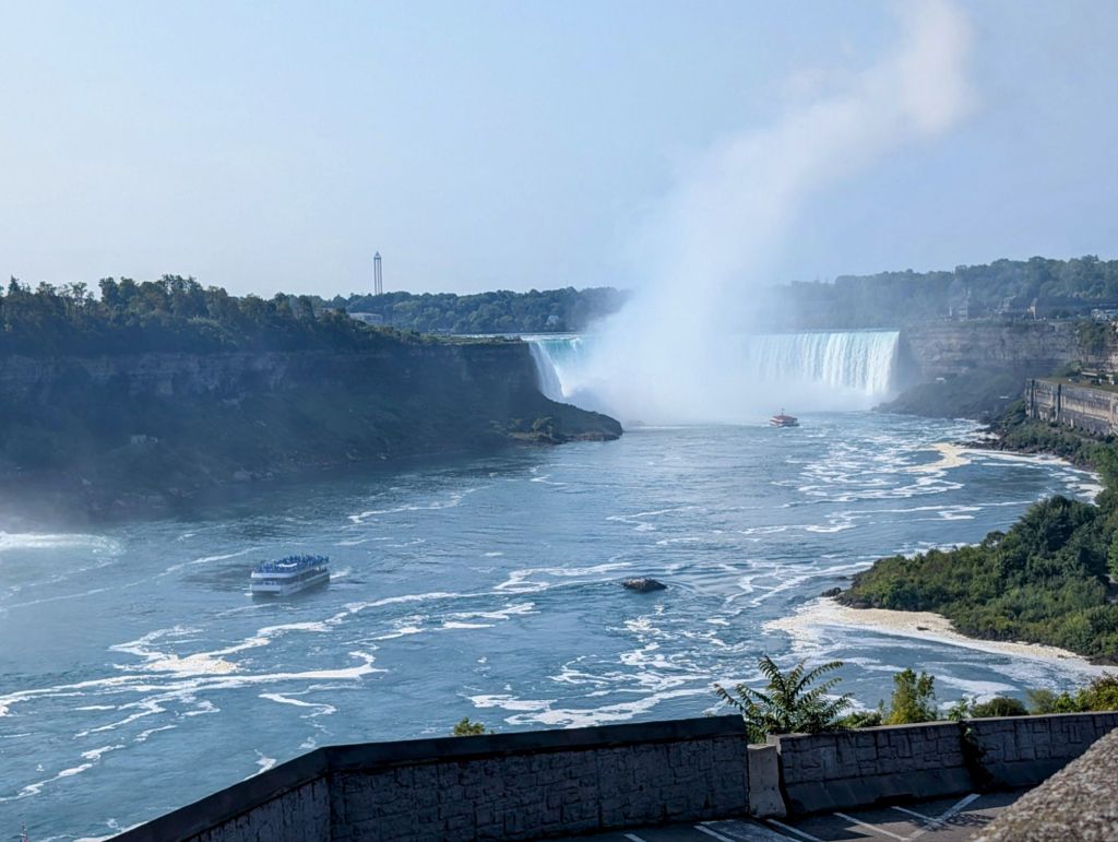Niagara Falls is not a classic honeymoon resort any more. The town has more of a mini Vegas vibe rather than a romantic one. But it’s always beautiful to see the falls. We took the boat ride up to the Horseshoe Falls section and were thoroughly splashed on our position at the bow, despite the flimsy plastic panchos we were given.
