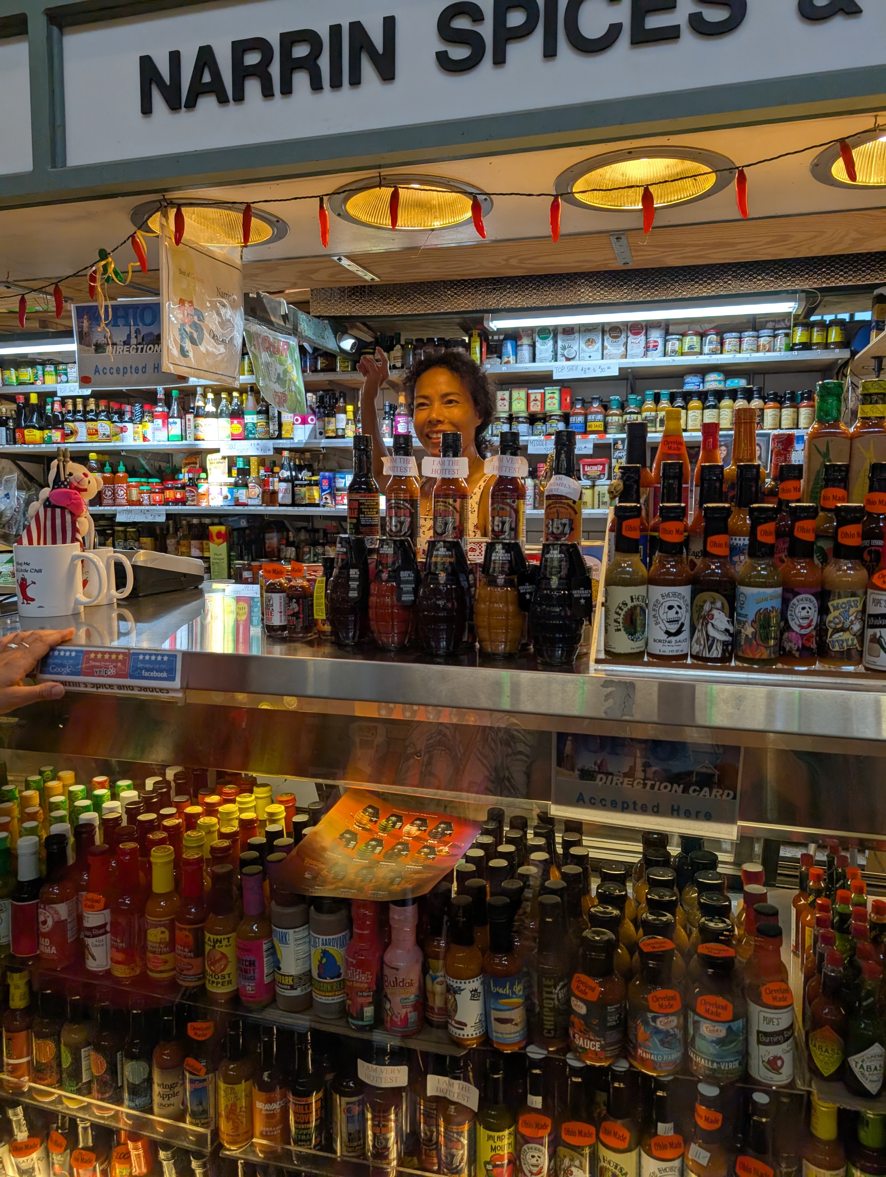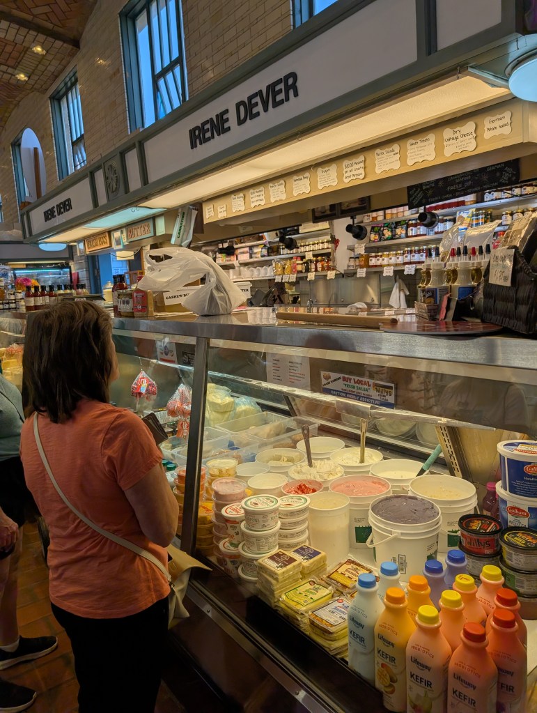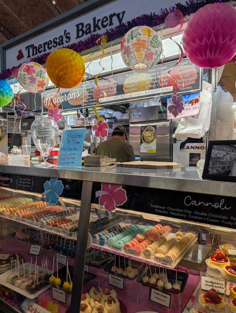 We got to visit another famous, historic food market–can there be too many foodie visits in a trip? This indoor, European-style West Side Market has been around for more than a century and some of the stalls have been run by the same family for nearly as long. Our guide Susan knew the vendors well and we tasted all kinds of delights, from kielbasa and saurkraut sandwiches to mini cannolis to locally made cheese and jerky to almond hummus. Foodie heaven!