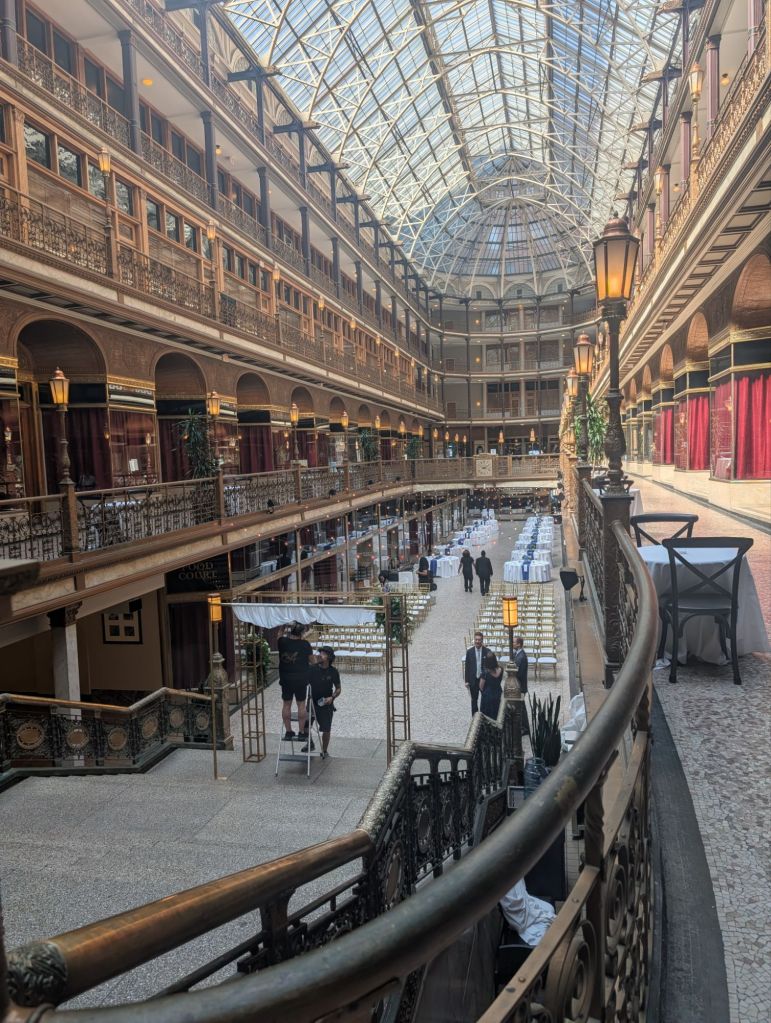 The Arcade Cleveland, built in 1890, was America’s first indoor shopping center. It was known as Cleveland’s crystal palace. It’s beautifully restored and now managed by a Hyatt Hotel.