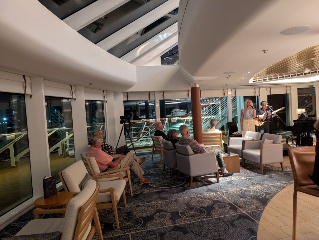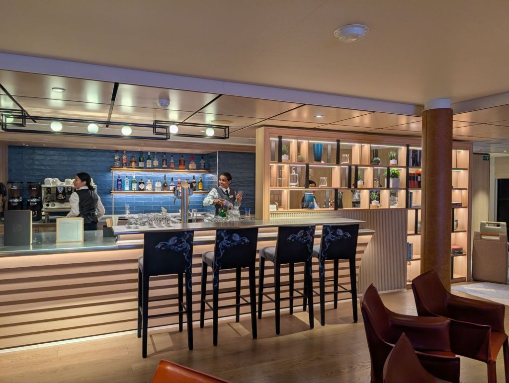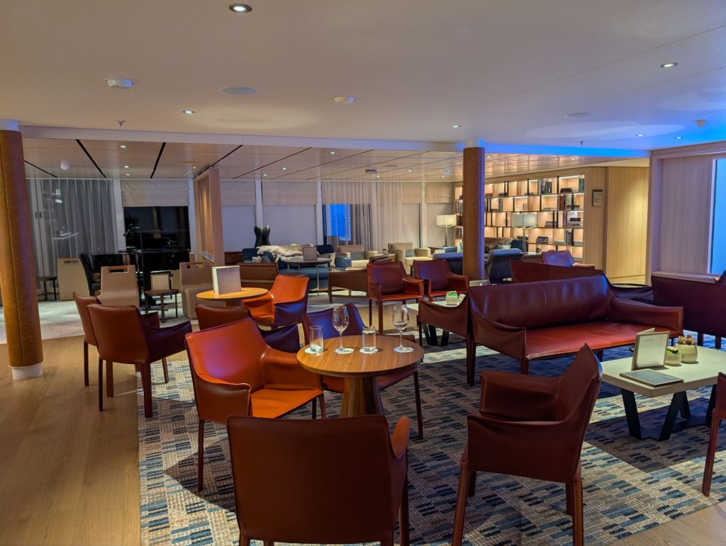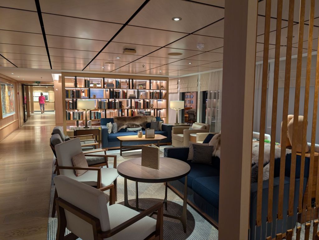 Below is a cozy area called the Hide. It is indeed in a hard to find area of the ship but worth the search. It’s a place for small group discussions or just some quiet private time.