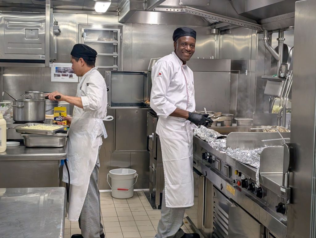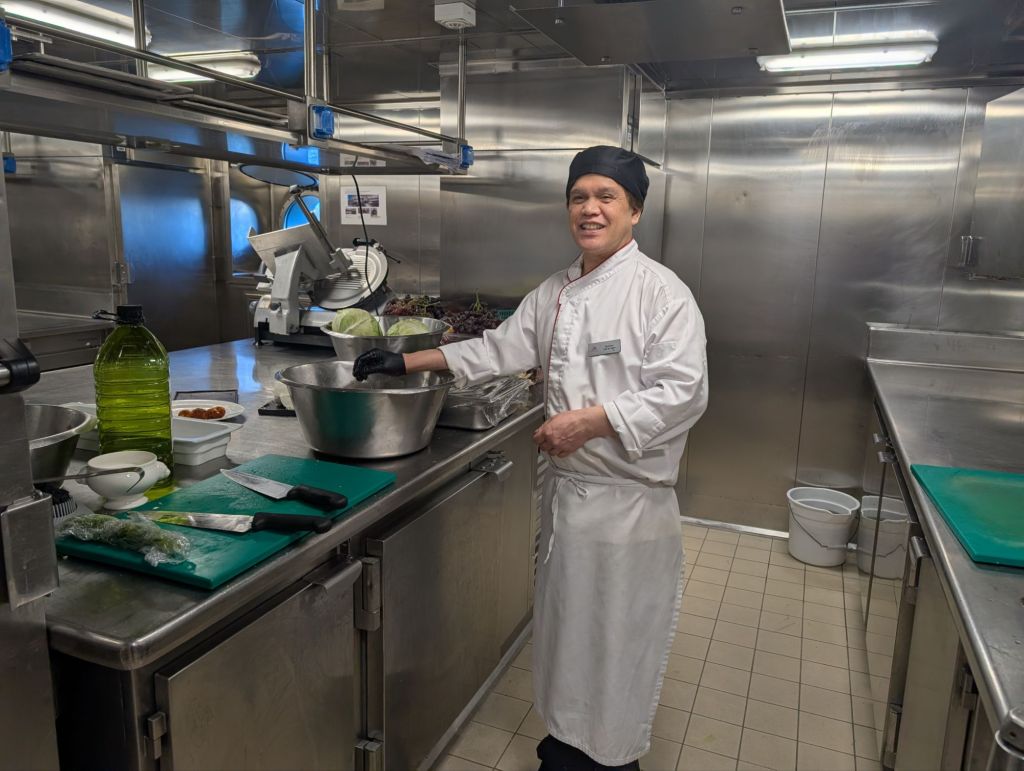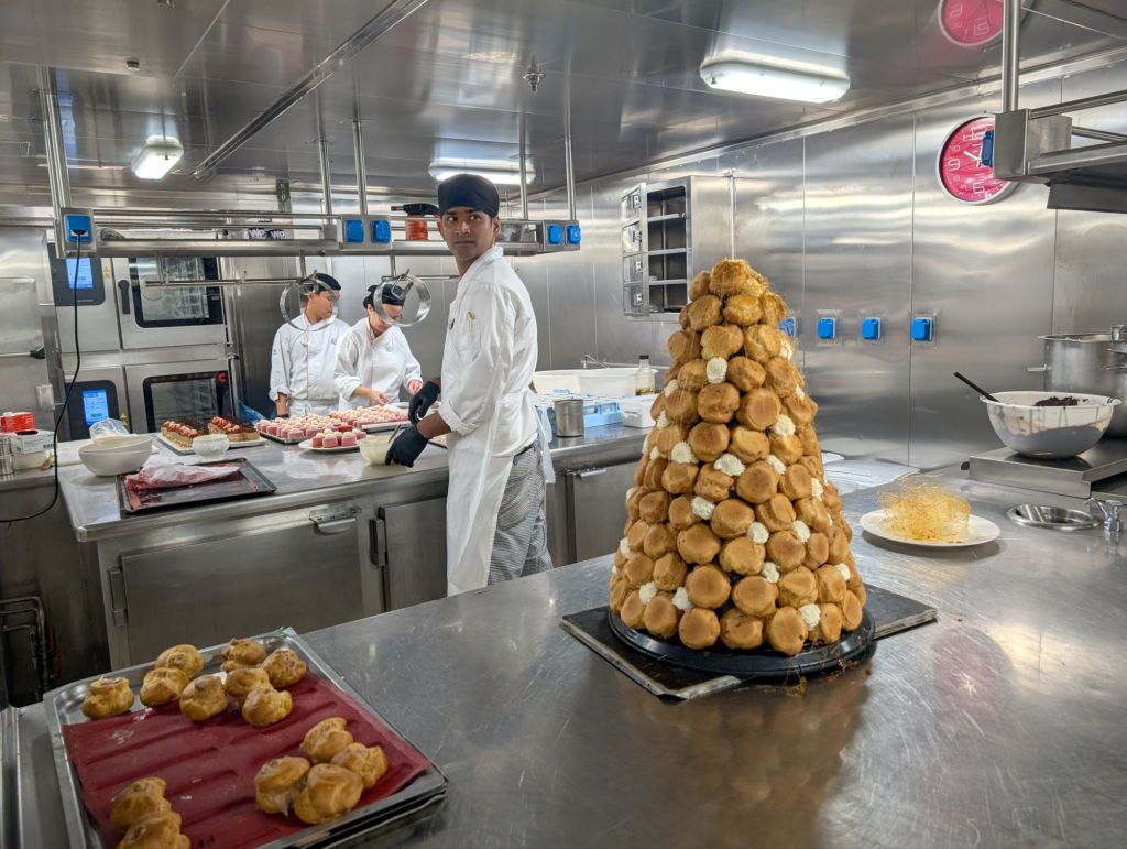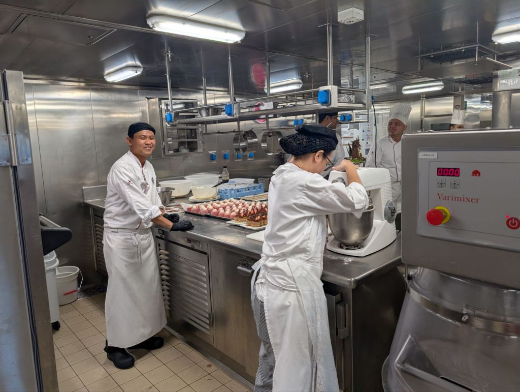 More important to me was the galley tour where we got to watch the army of cooks working on our wonderful meals.