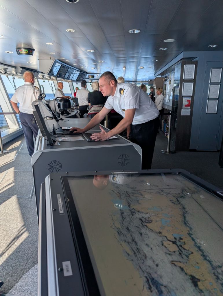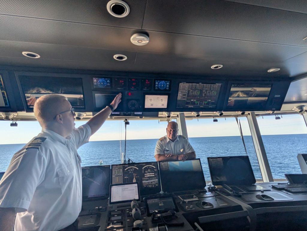 We had a few opportunities to explore the backstage areas of the ship. One was a bridge tour where the captain and his officers explained some of the sophisticated tools they have for navigating the ship.