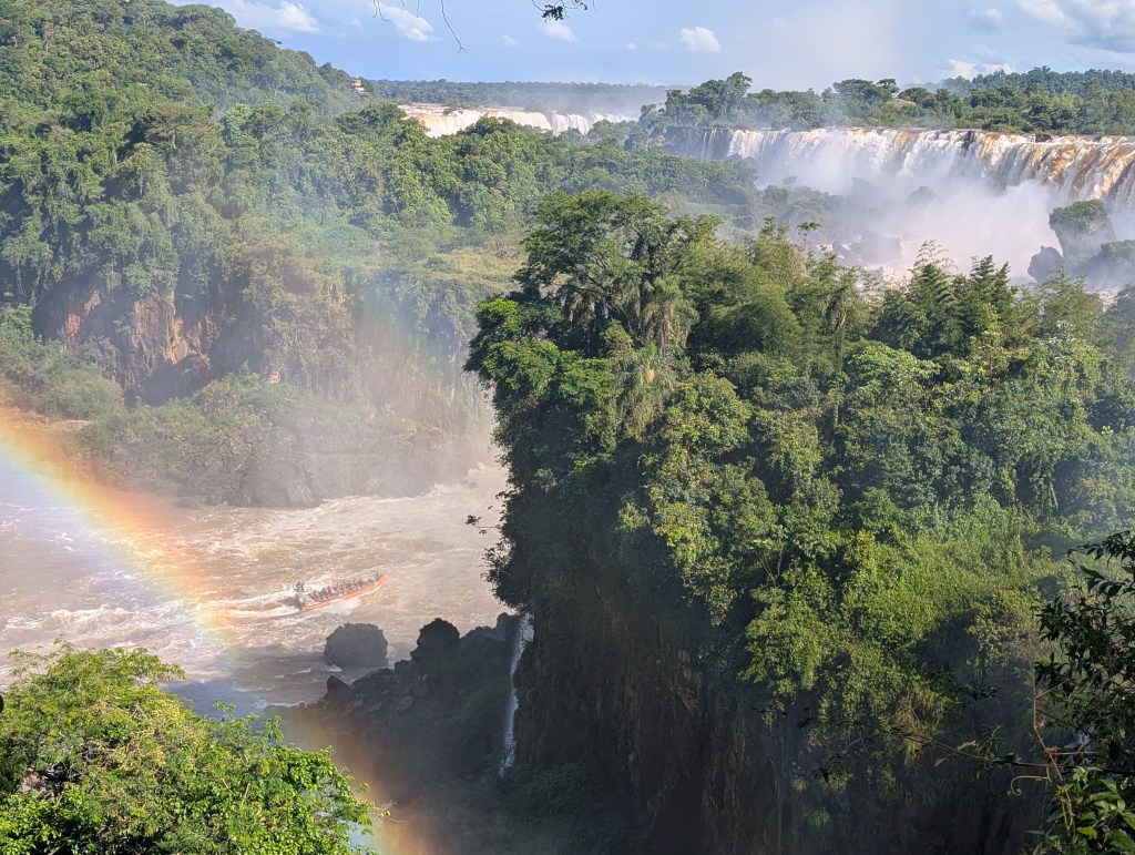 This picture from above the falls shows one of the Great Adventure boats heading into the falls, giving another group of passengers the chance to say, “We got soaked at Iguazu.” The beautiful rainbow was really there. The mist from the falls creates lots of rainbows.